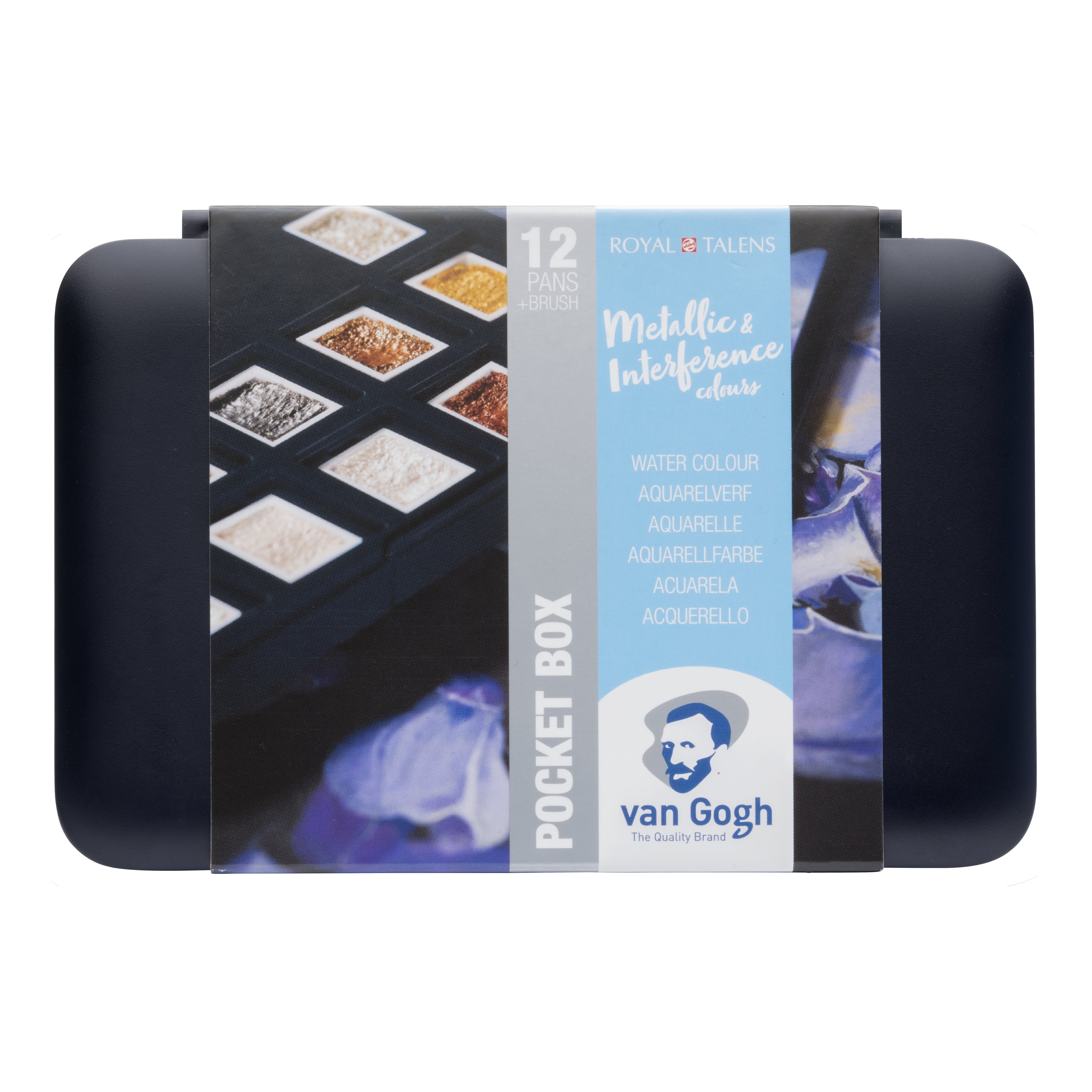Komplekt sisaldab pintslit, paletti ja 12 metallik ja interferents värvi, mis sobivad tumedale paberile maalimiseks.