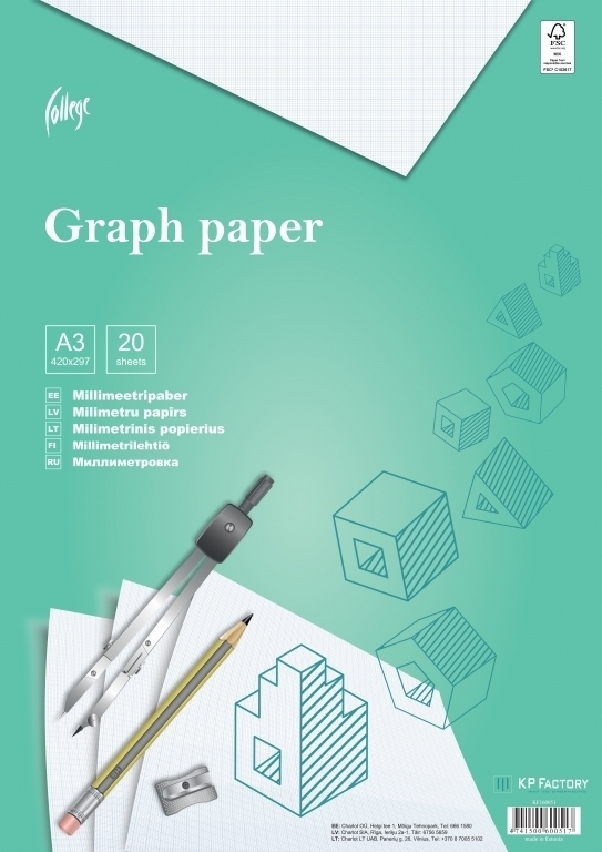 Liimköites A3 millimeetripaber erinevateks joonestustöödeks. Plokis 20 lehte.