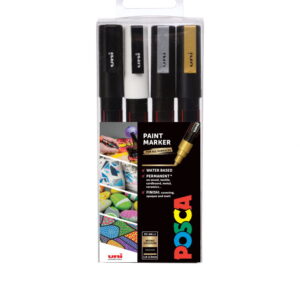 Posca markerite Mono komplektis on must, valge, kuld, hõbe. 3M...